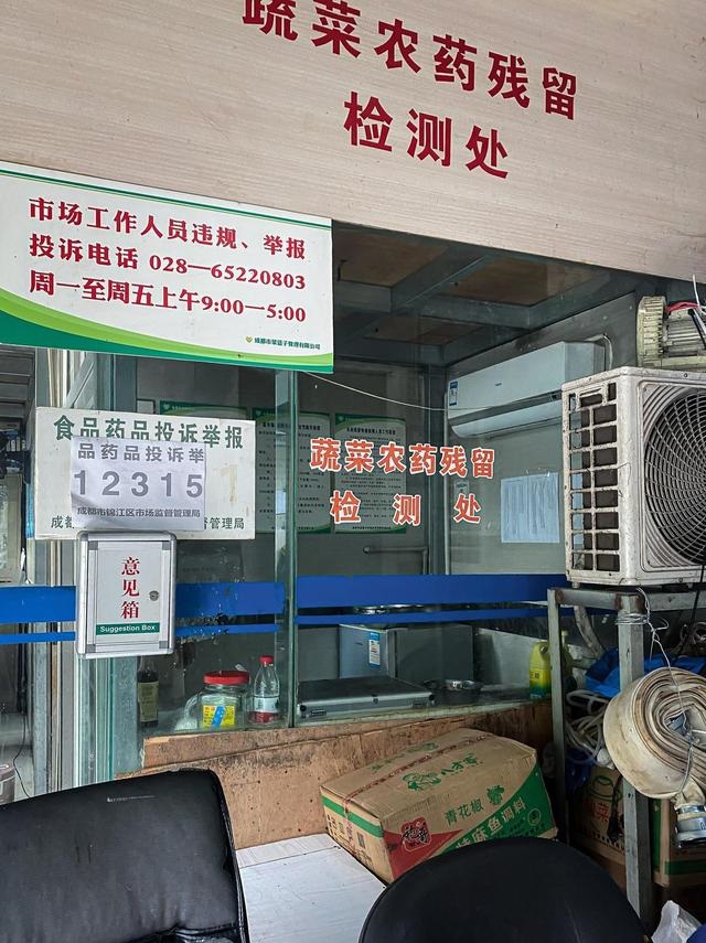▲益民菜市(李家沱店)的農(nóng)殘檢測室可以做農(nóng)殘檢測
