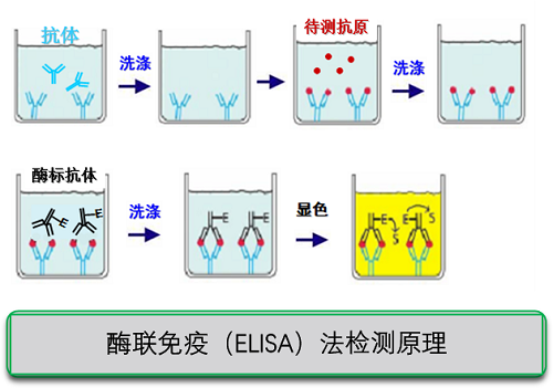 1971年瑞典學(xué)者Engvall和Perlmann,荷蘭學(xué)者Van Weerman和Schuurs分別報(bào)道將免疫技術(shù)發(fā)展為檢測(cè)體液中微量物質(zhì)的固相免疫測(cè)定方法,即酶聯(lián)免疫吸附測(cè)定法 (Enzyme-Linked ImmunoSorbent Assay , ELISA) 本方法為傳統(tǒng)快檢方法,應(yīng)用非常廣泛,適合大量樣品的檢測(cè),但隨著快速定量檢測(cè)試紙技術(shù)的成熟和普及,逐步被取代的趨勢(shì)非常明顯。