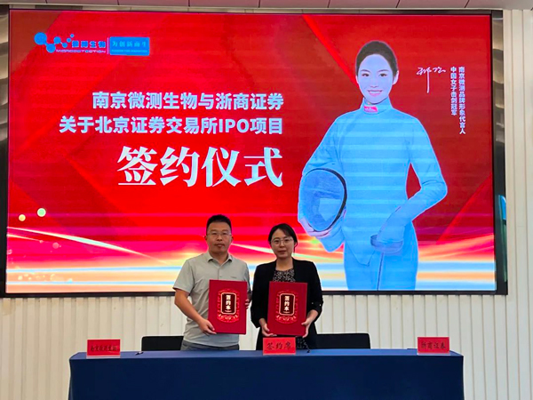 揚帆啟航,逐夢新征程。南京微測生物與浙商證券關于北京證券交易所IPO項目簽約儀式在南京生物醫(yī)藥谷發(fā)展中心舉行。此次簽約儀式,標志著南京微測生物在發(fā)展歷程上迎來了又一個關鍵節(jié)點,正式開啟上市新征程,它代表著公司將立足新起點,不斷激發(fā)活力,勇于探索,在多年經(jīng)驗沉淀的基礎上邁向新高度。
