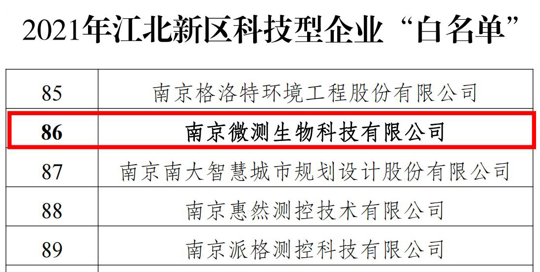 南京微測入選2021年江北新區(qū)科技企業(yè)“白名單”